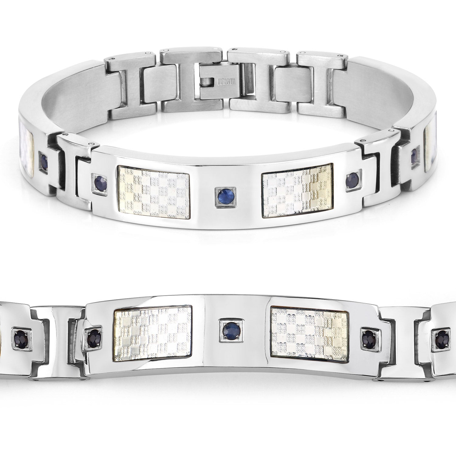 Titanium Men's Bracelet, Mens Titanium Bracelet with Silver Plated Steel Inlay, 0.72ctw. Natural Blue Sapphire Rounds