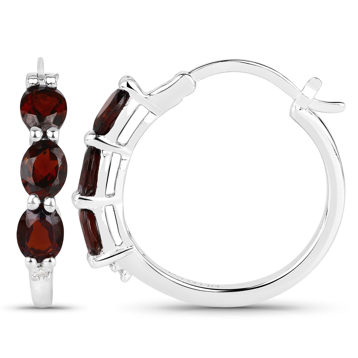 2.71 Carat Genuine Garnet and White Diamond .925 Sterling Silver Earrings