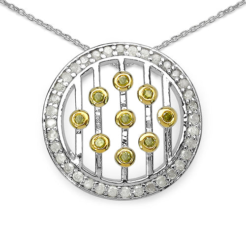 0.45 Carat Genuine White Diamond and Yellow Diamond .925 Sterling Silver Pendant