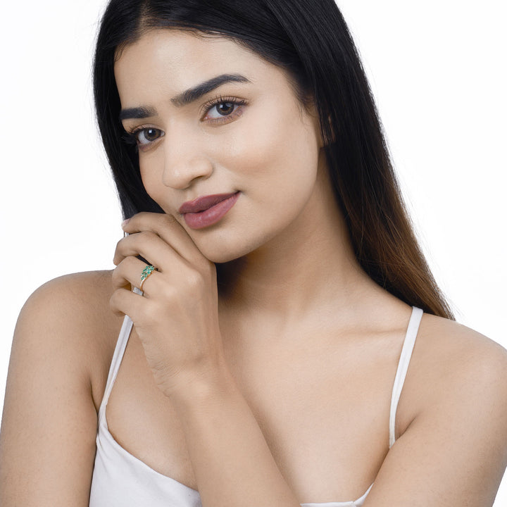 0.68 Carat Genuine Zambian Emerald and White Diamond 14K Yellow Gold Ring