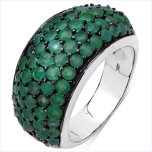 2.90 Carat Genuine Emerald & White Diamond .925 Sterling Silver Ring