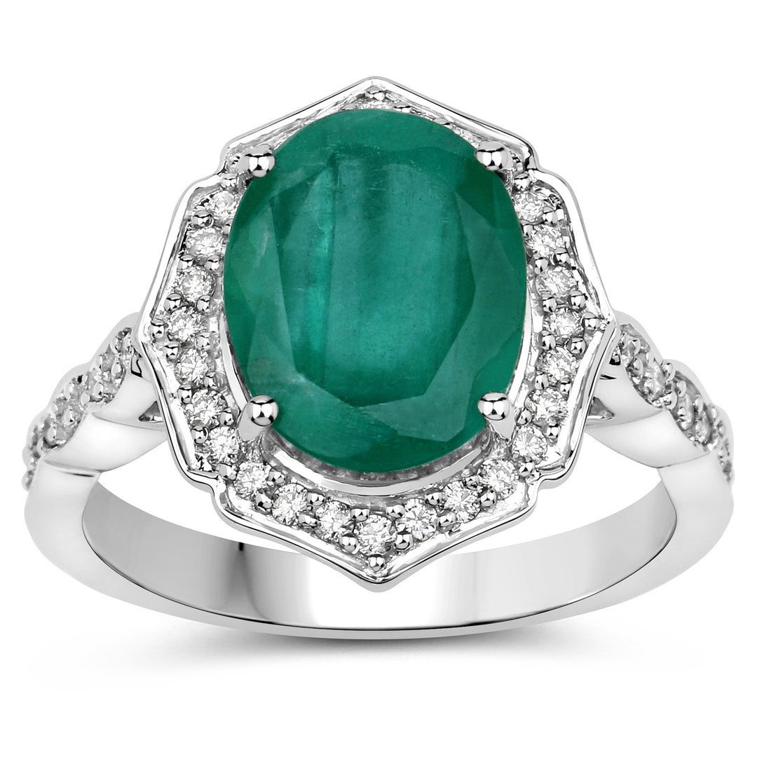 4.66 Carat Genuine Brazilian Emerald and White Diamond 14K White Gold Ring