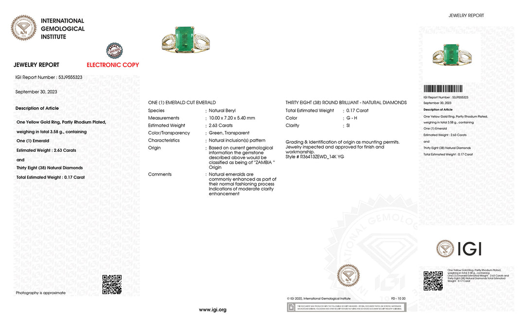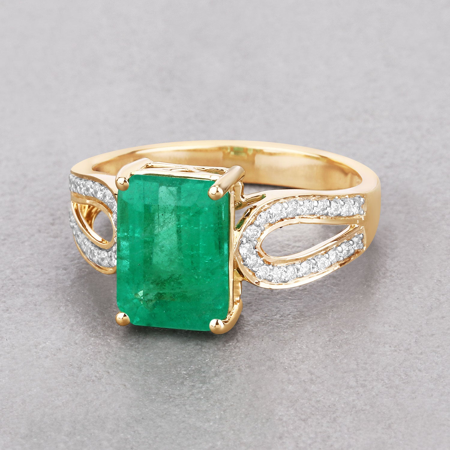 IGI Certified 2.80 Carat Genuine Zambian Emerald and White Diamond 14K Yellow Gold Ring