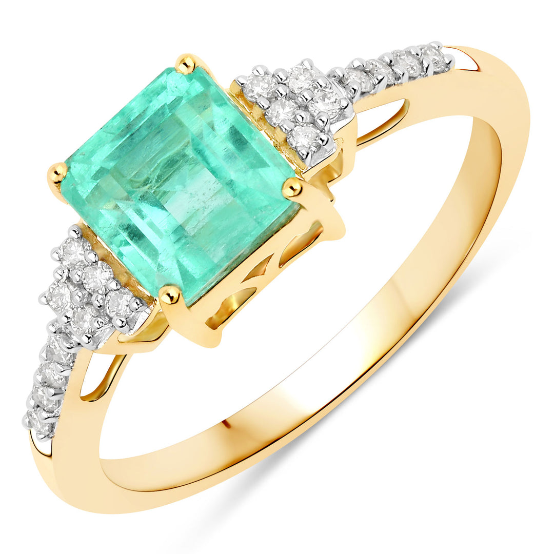 1.08 Carat Genuine Emerald and White Diamond 14K Yellow Gold Ring
