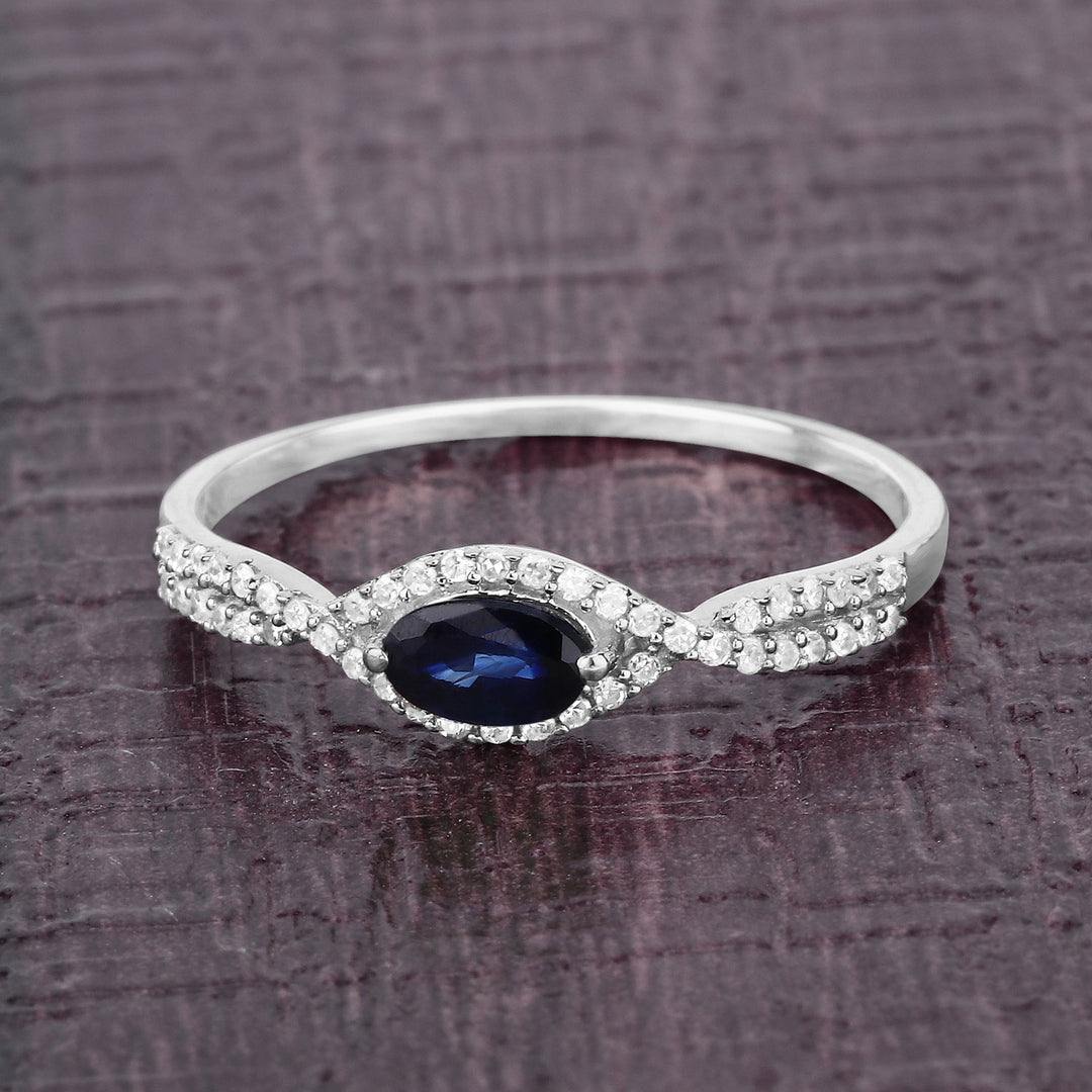 0.35 Carat Genuine Blue Sapphire and White Diamond 14K White Gold Ring