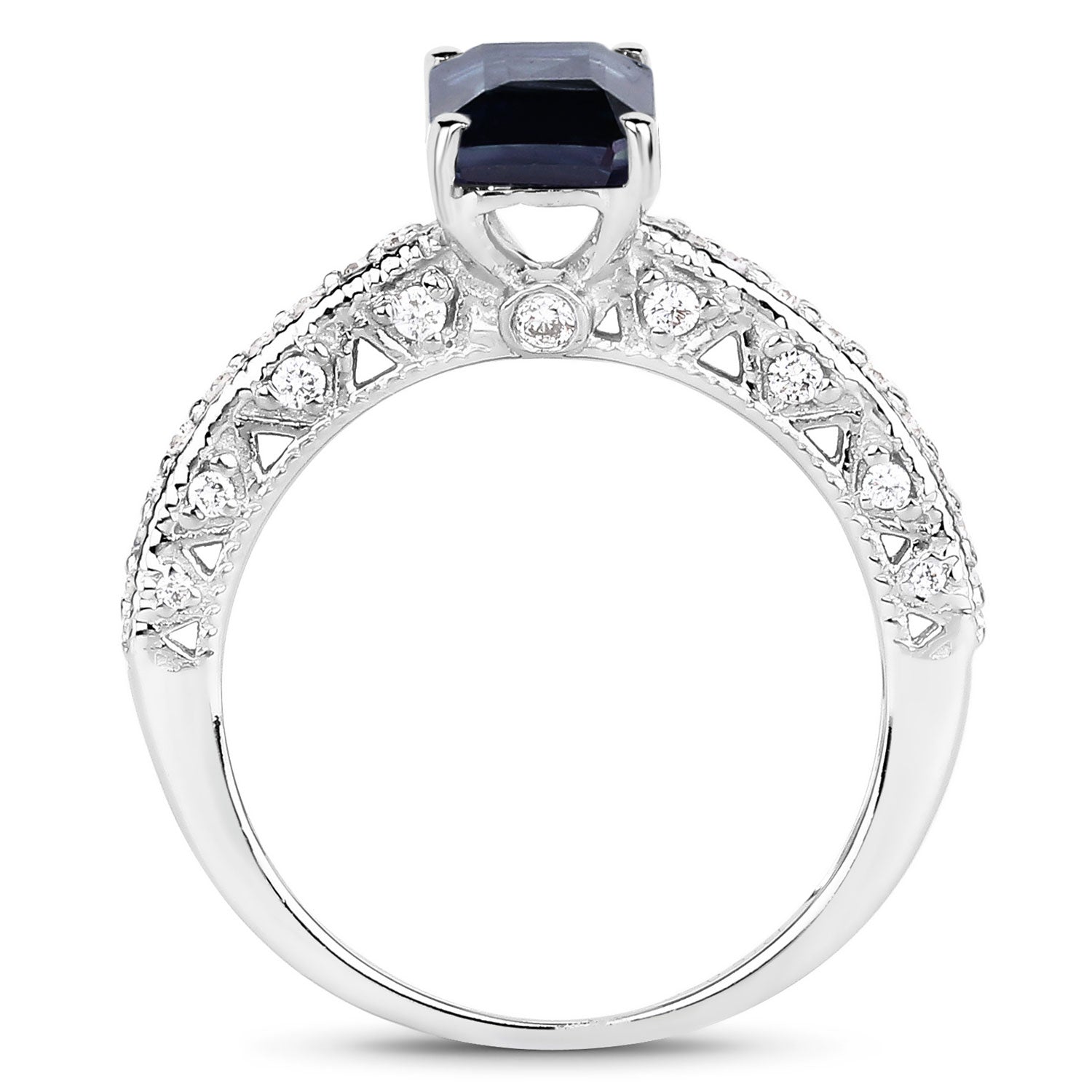 1.55 Carat Genuine Blue Sapphire and White Diamond 14K White Gold Ring (I Color, SI Clarity)