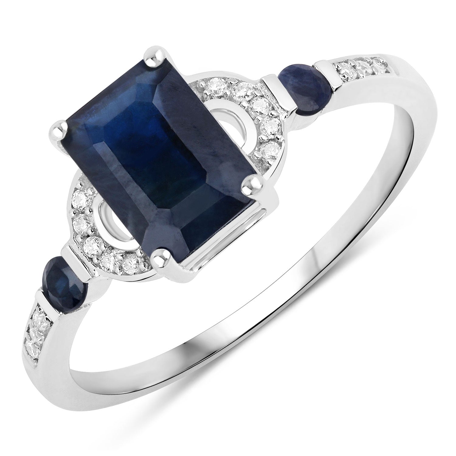 1.64 Carat Genuine Blue Sapphire and White Diamond 14K White Gold Ring