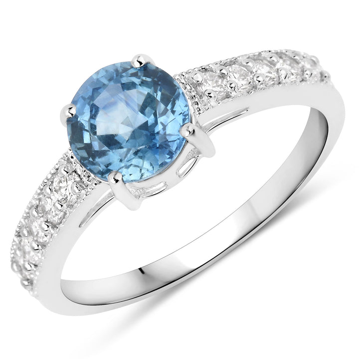 1.90 Carat Genuine Blue Sapphire and White Diamond 14K White Gold Ring