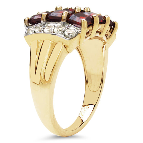 14K Yellow Gold Plated 4.04 Carat Genuine Garnet & White Topaz .925 Sterling Silver Ring