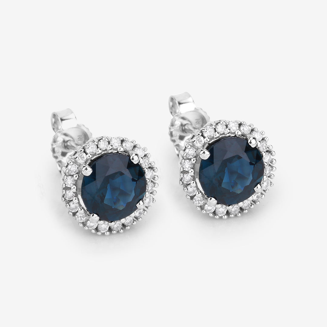 2.18 Carat Genuine Blue Sapphire and White Diamond 14K White Gold Earrings