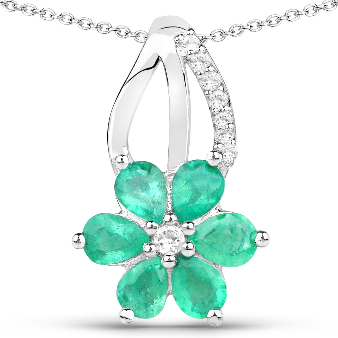3.61 Carat Genuine Emerald and White Topaz .925 Sterling Silver Set (Ring, Earrings, and Pendant )