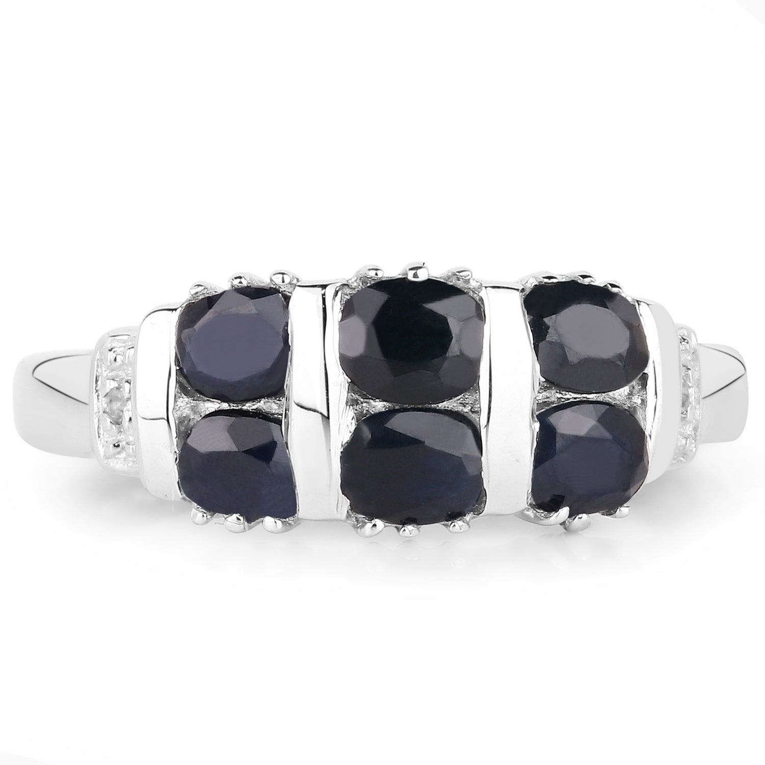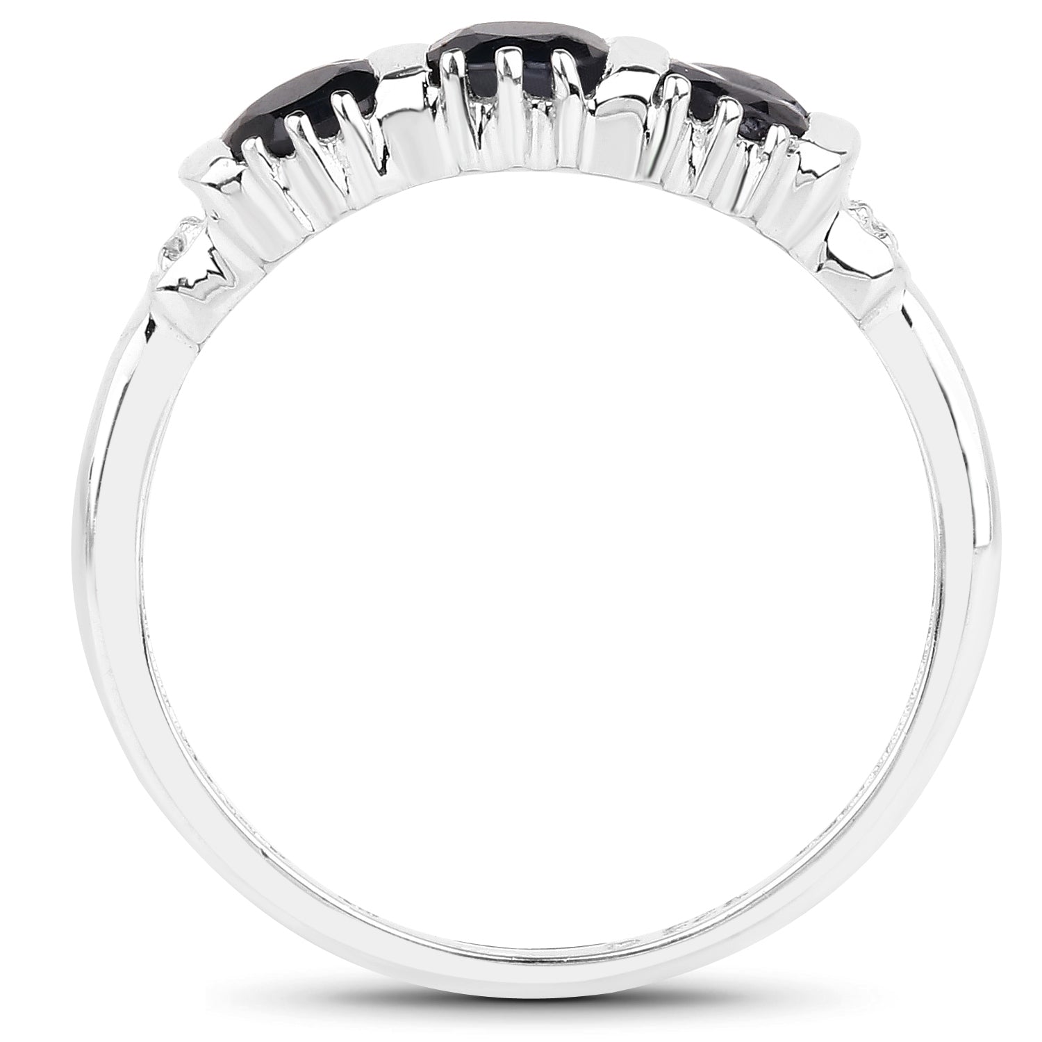 1.33 Carat Genuine Black Sapphire and White Topaz .925 Sterling Silver Ring