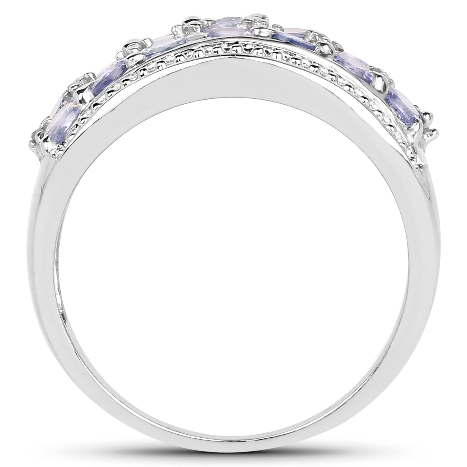 1.44 Carat Genuine Tanzanite & White Topaz .925 Sterling Silver Ring