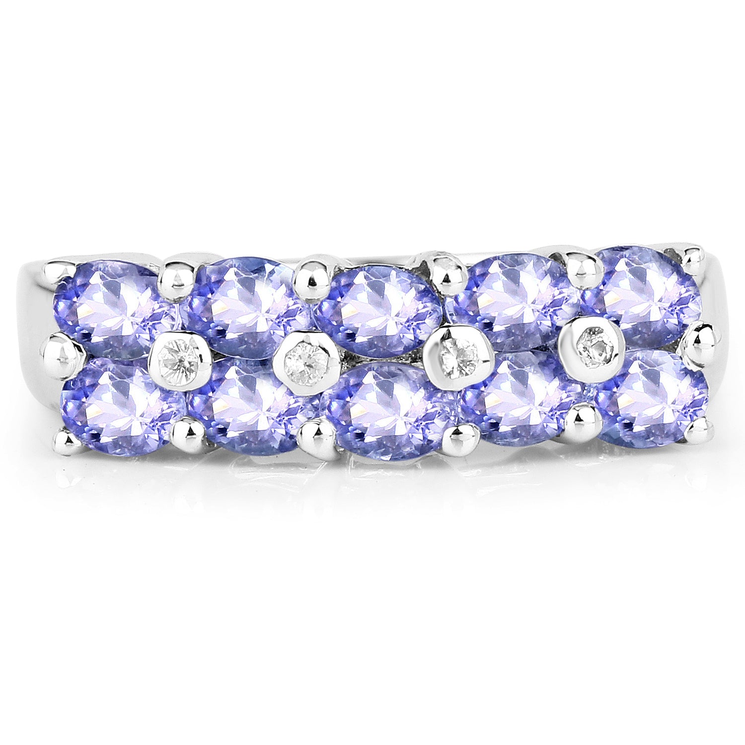1.76 Carat Genuine Tanzanite and White Sapphire .925 Sterling Silver Ring