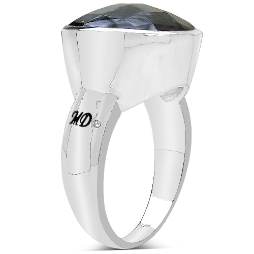 10.81 Carat Genuine Smoky Quartz & White Diamond .925 Sterling Silver Ring
