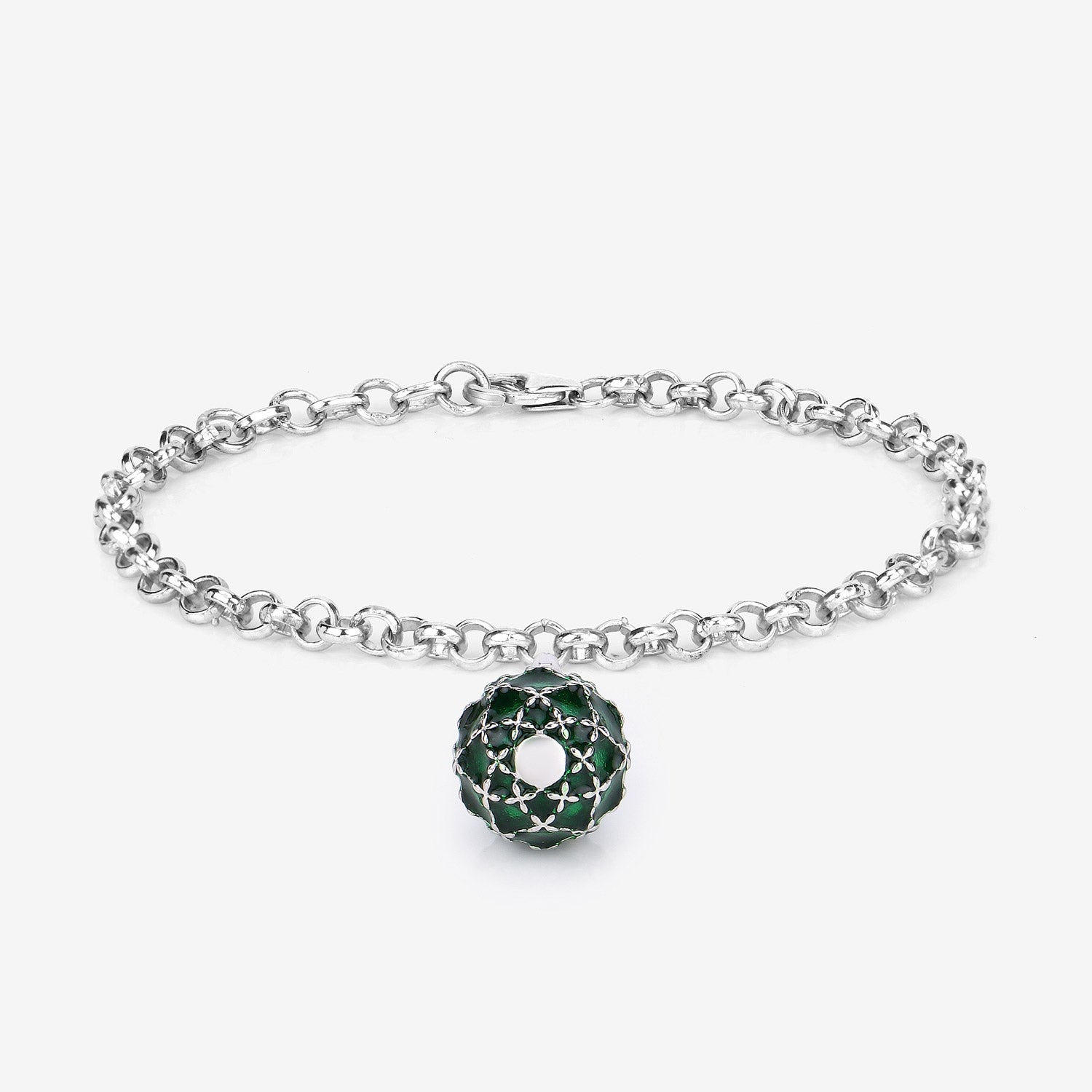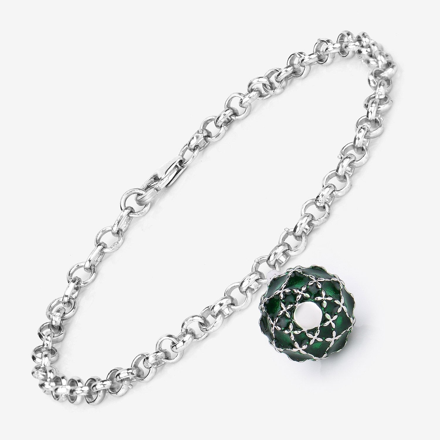 13.66 Grams .925 Sterling Silver Green Enamel Charm Bracelet