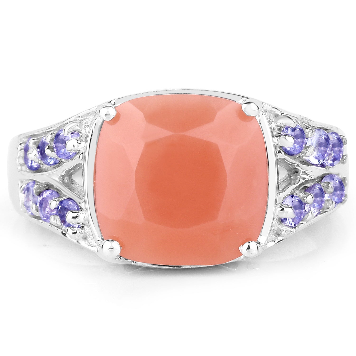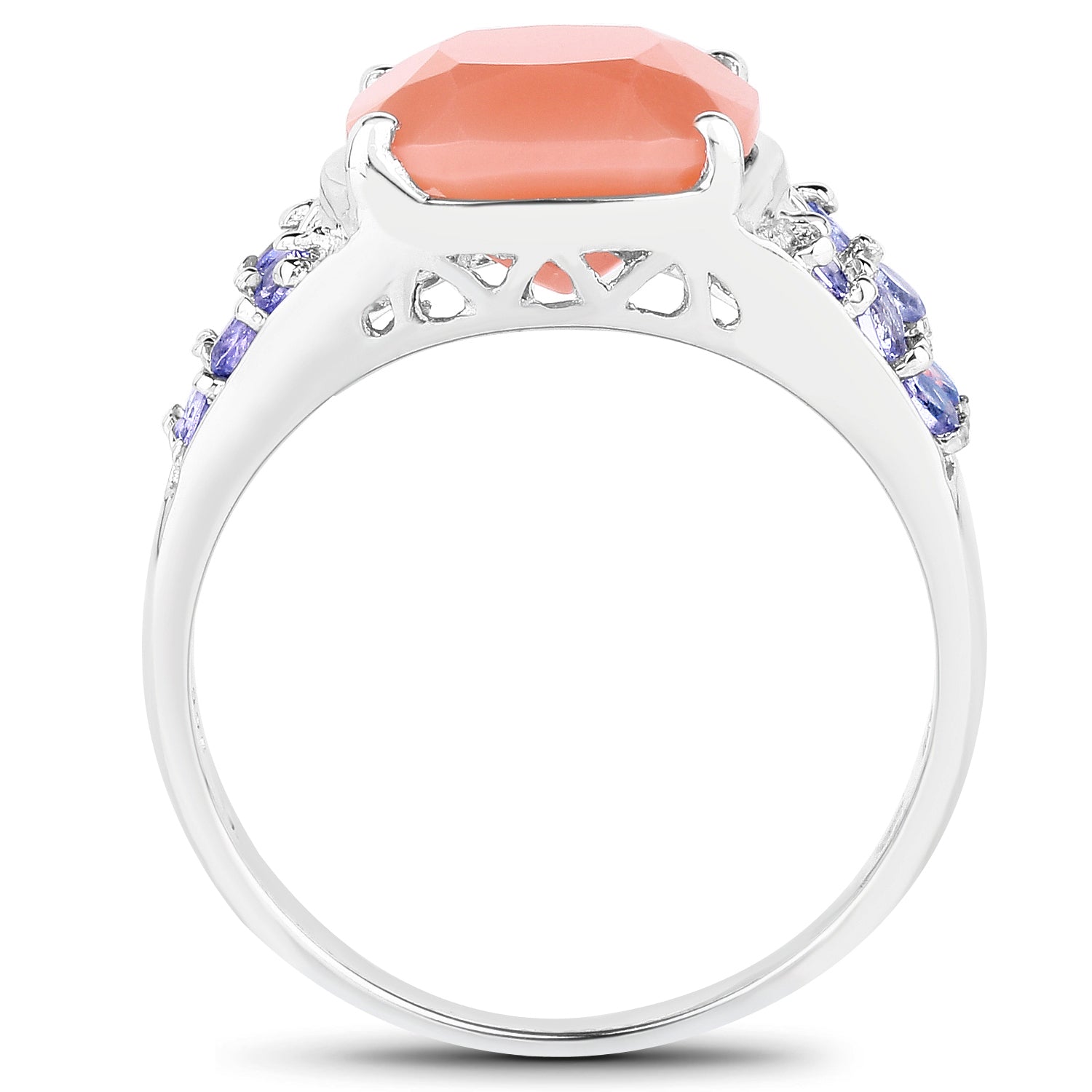 3.97 Carat Genuine Peach Moonstone and Tanzanite .925 Sterling Silver Ring