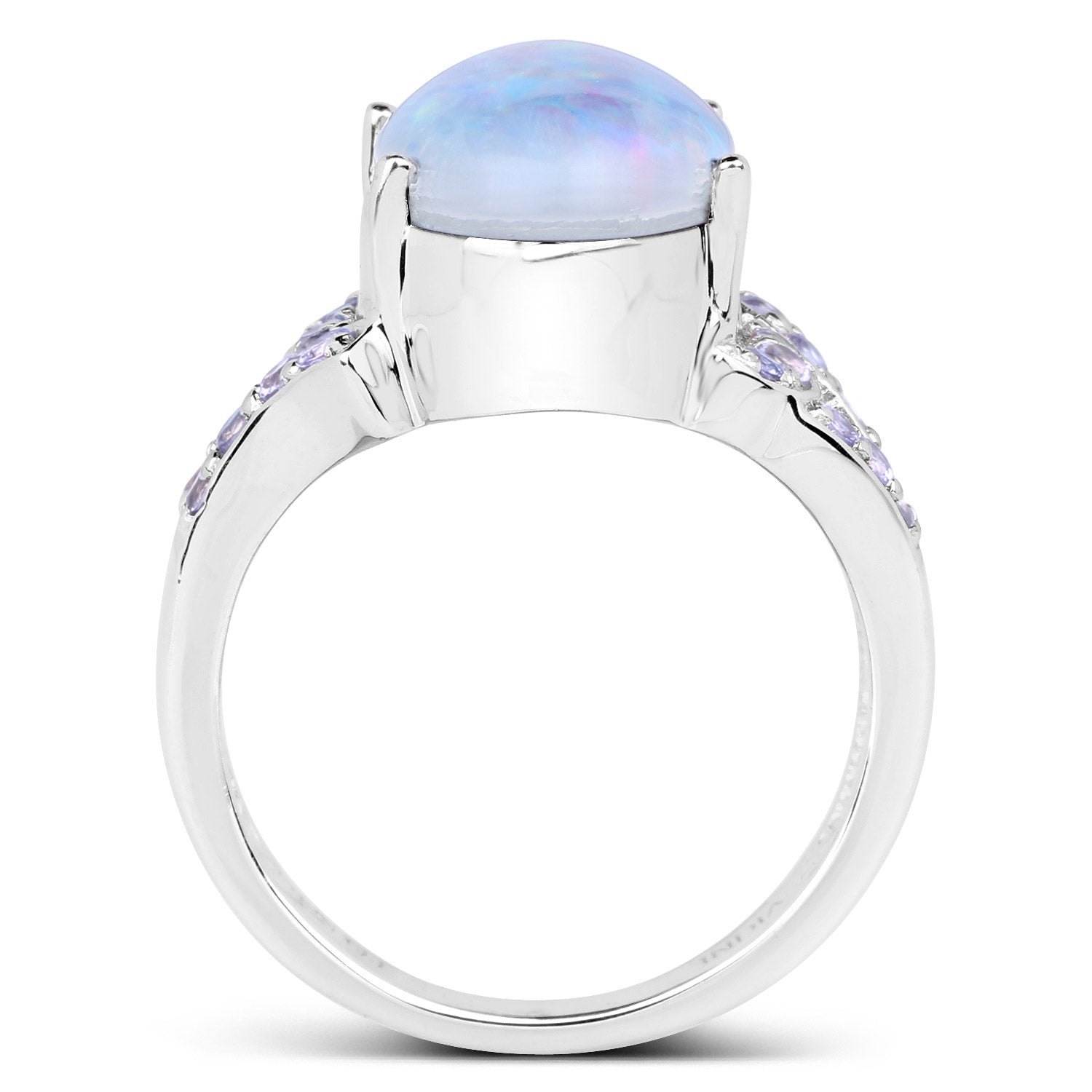 4.12 Carat Genuine Triplet Opal and Tanzanite .925 Sterling Silver Ring