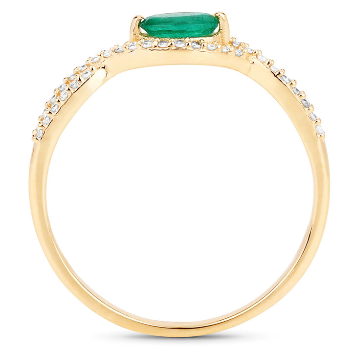 0.32 Carat Genuine Zambian Emerald and White Diamond 14K Yellow Gold Ring