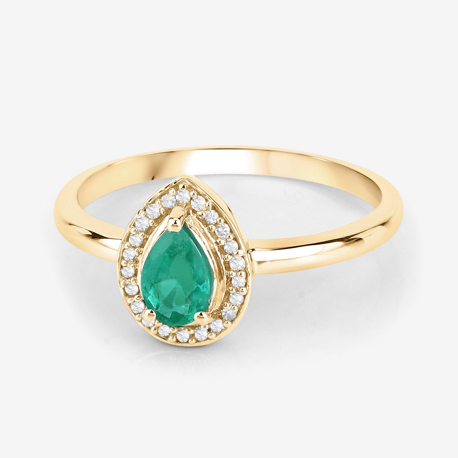 0.41 Carat Genuine Zambian Emerald and White Diamond 14K Yellow Gold Ring