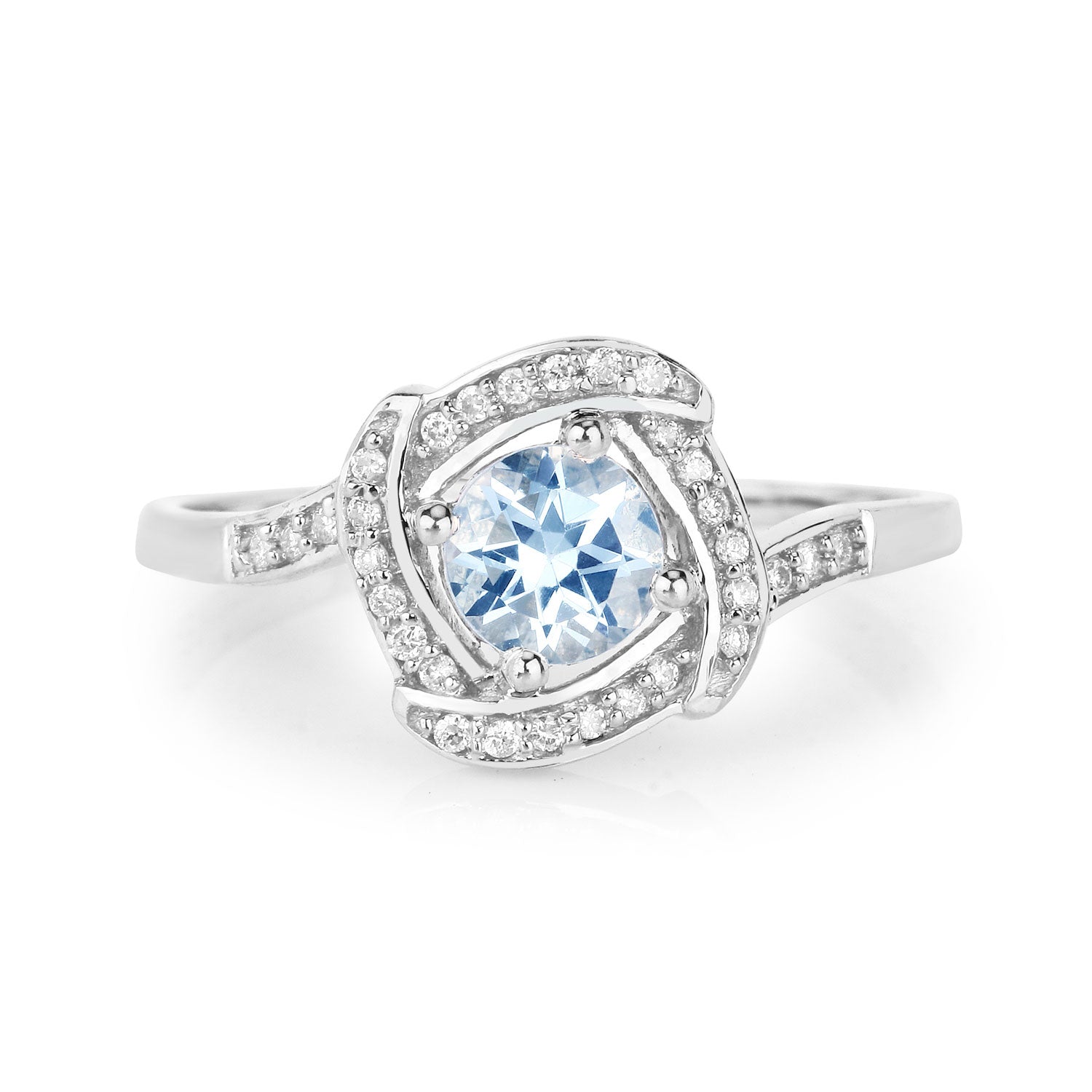 0.46 Carat Genuine Aquamarine and White Diamond 14K White Gold Ring