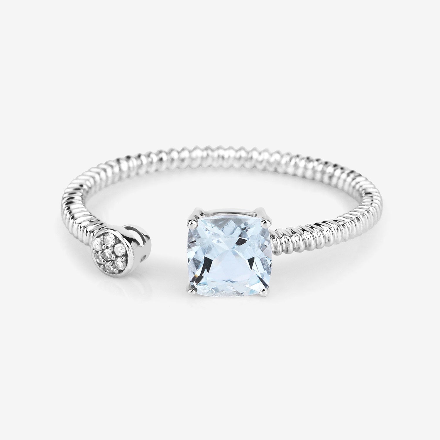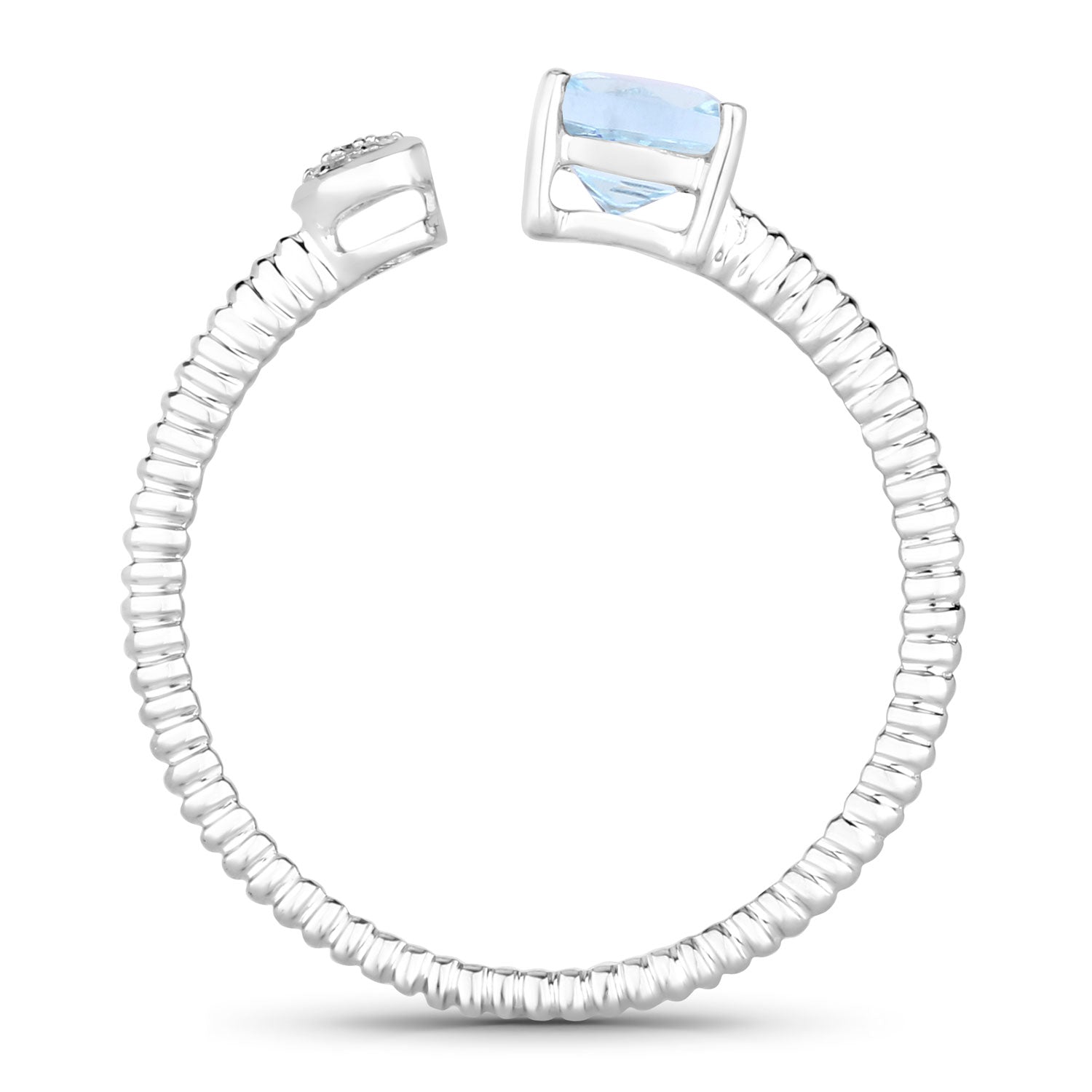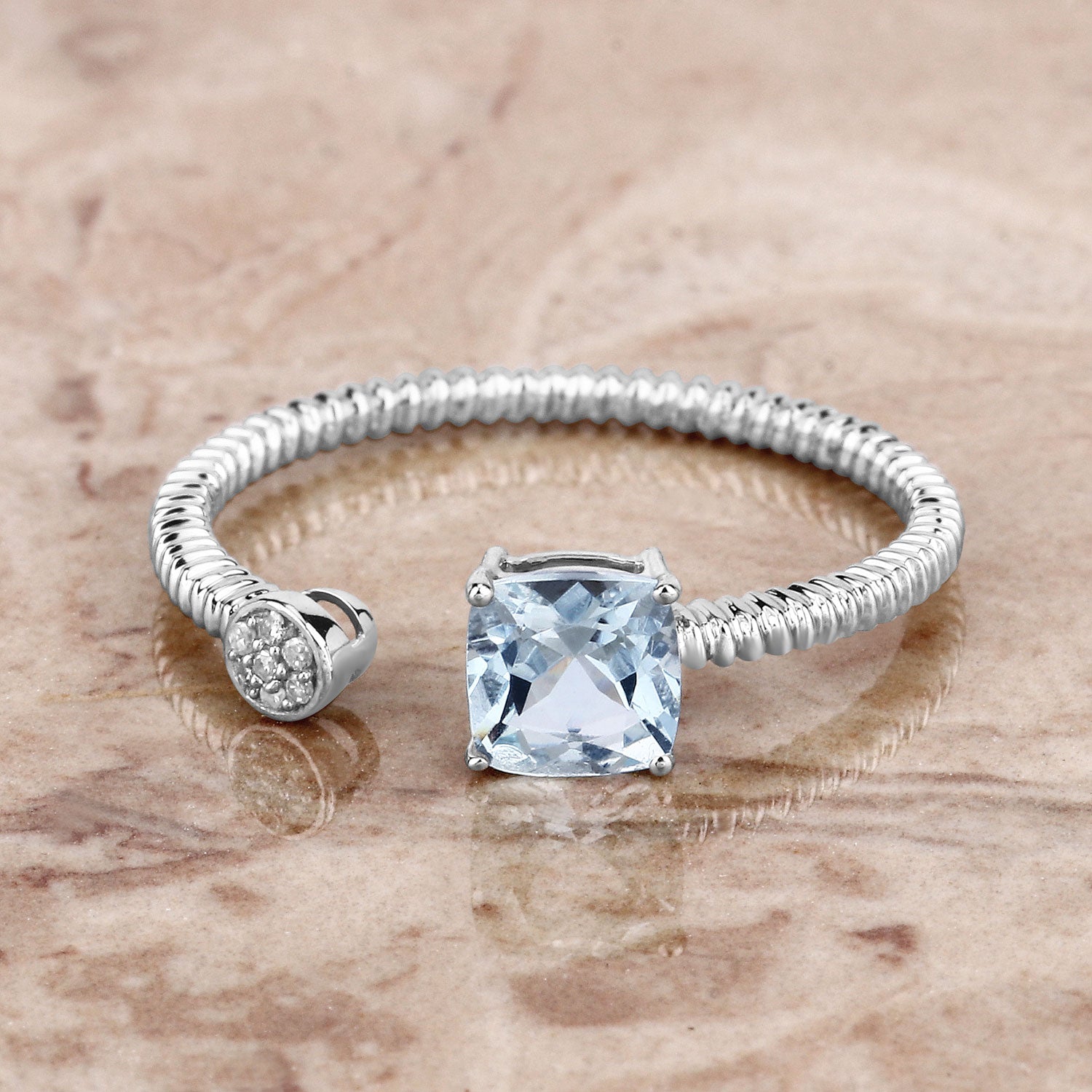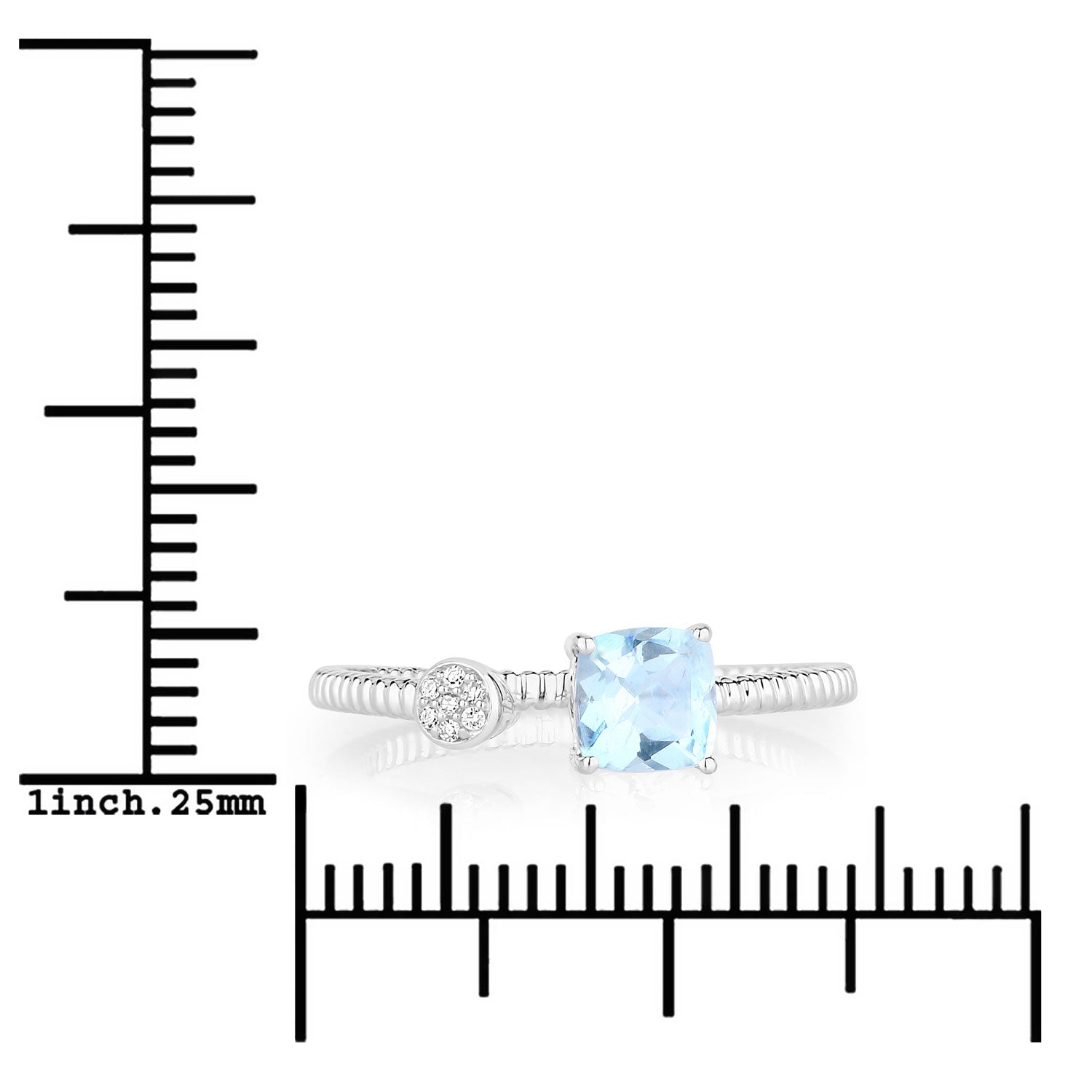 0.52 Carat Genuine Aquamarine and White Diamond 14K White Gold Ring