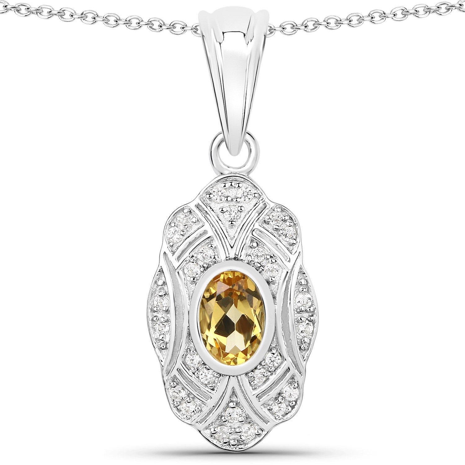 0.55 Carat Genuine Citrine and White Topaz .925 Sterling Silver Pendant