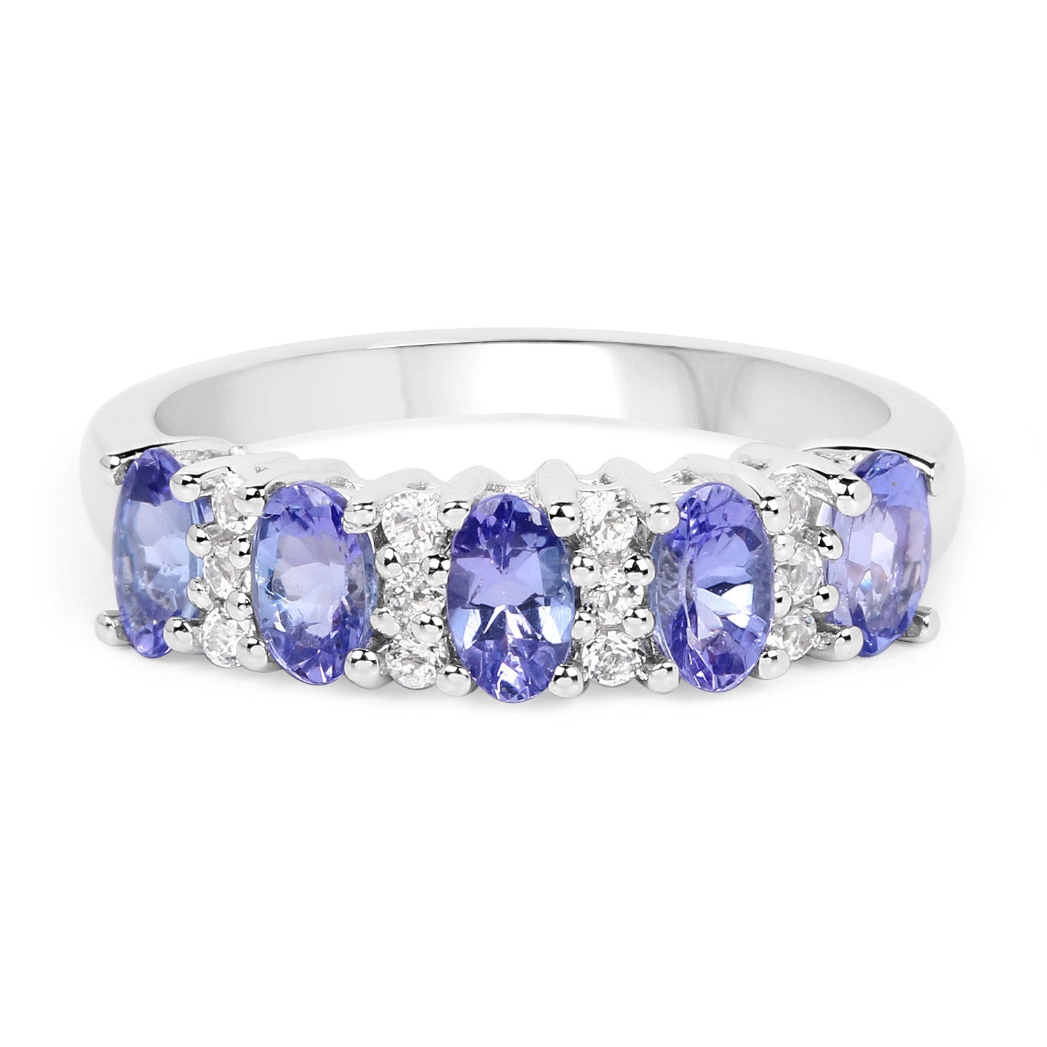 1.51 Carat Genuine Tanzanite and White Topaz .925 Sterling Silver Ring