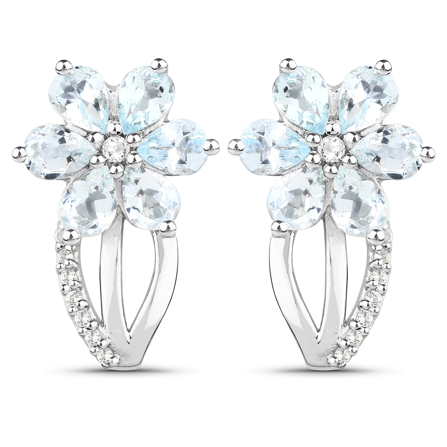 1.54 Carat Genuine Aquamarine and White Topaz .925 Sterling Silver Earrings
