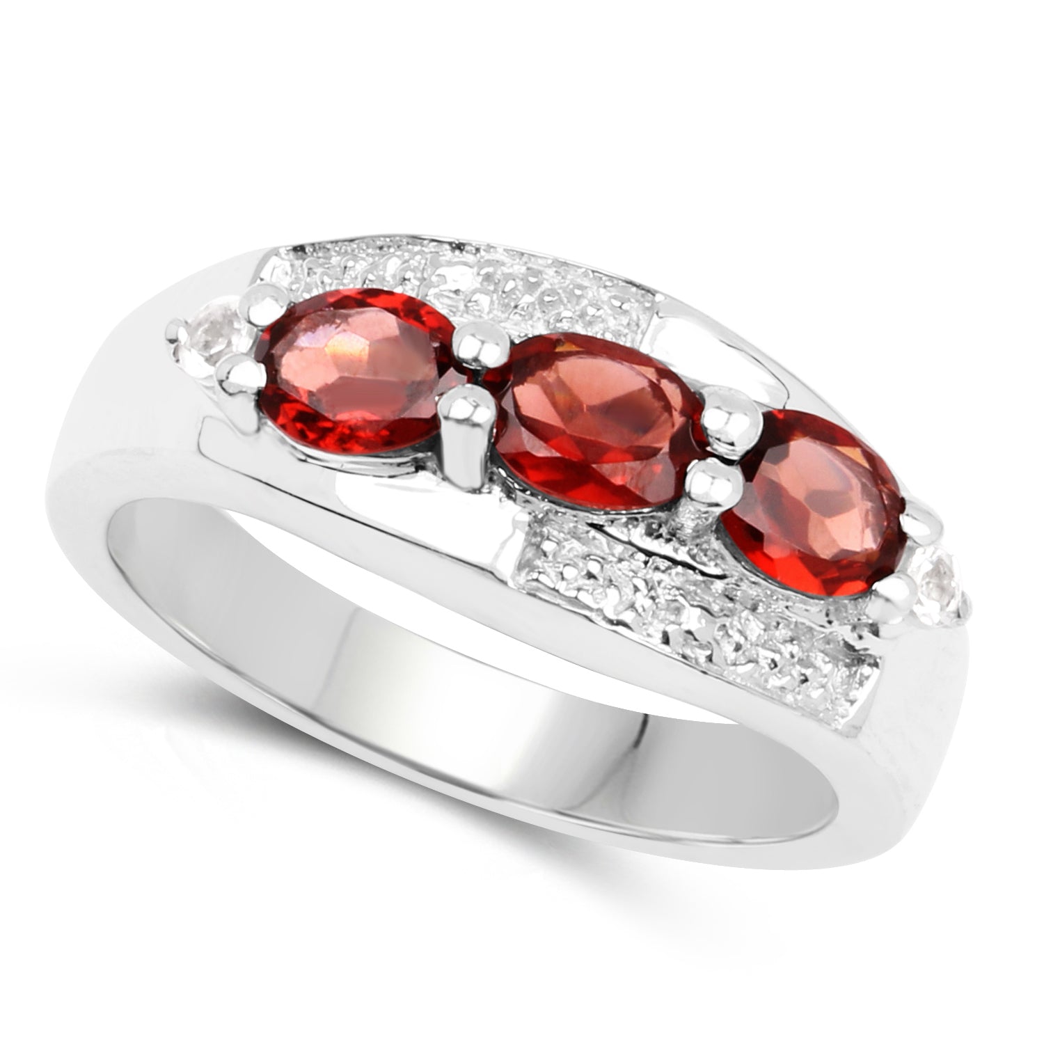 1.58 Carat Genuine Garnet and White Topaz .925 Sterling Silver Ring