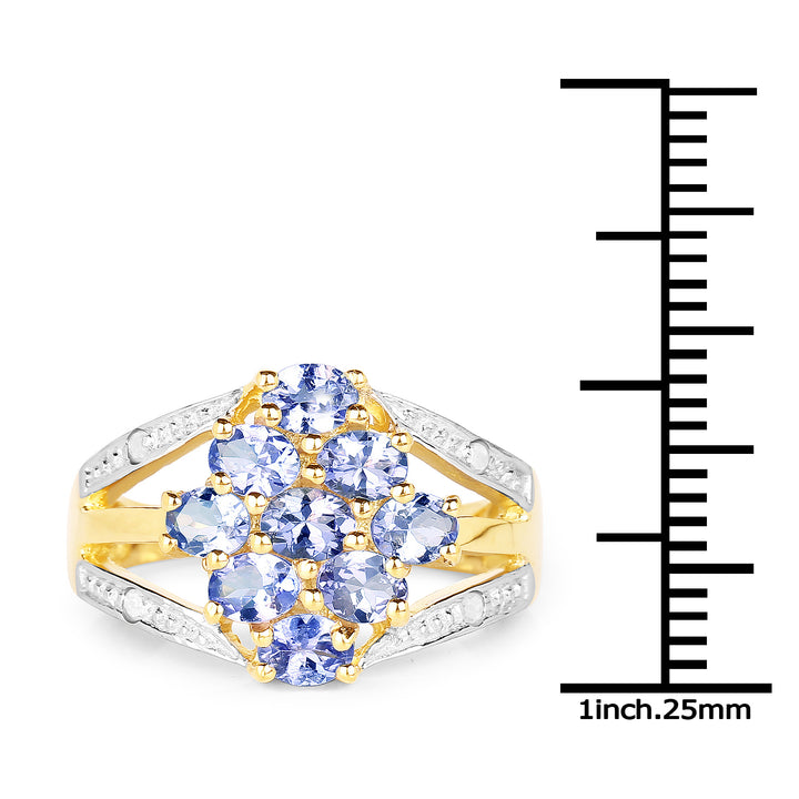 14K Yellow Gold Plated 1.59 Carat Genuine Tanzanite and White Topaz .925 Sterling Silver Ring