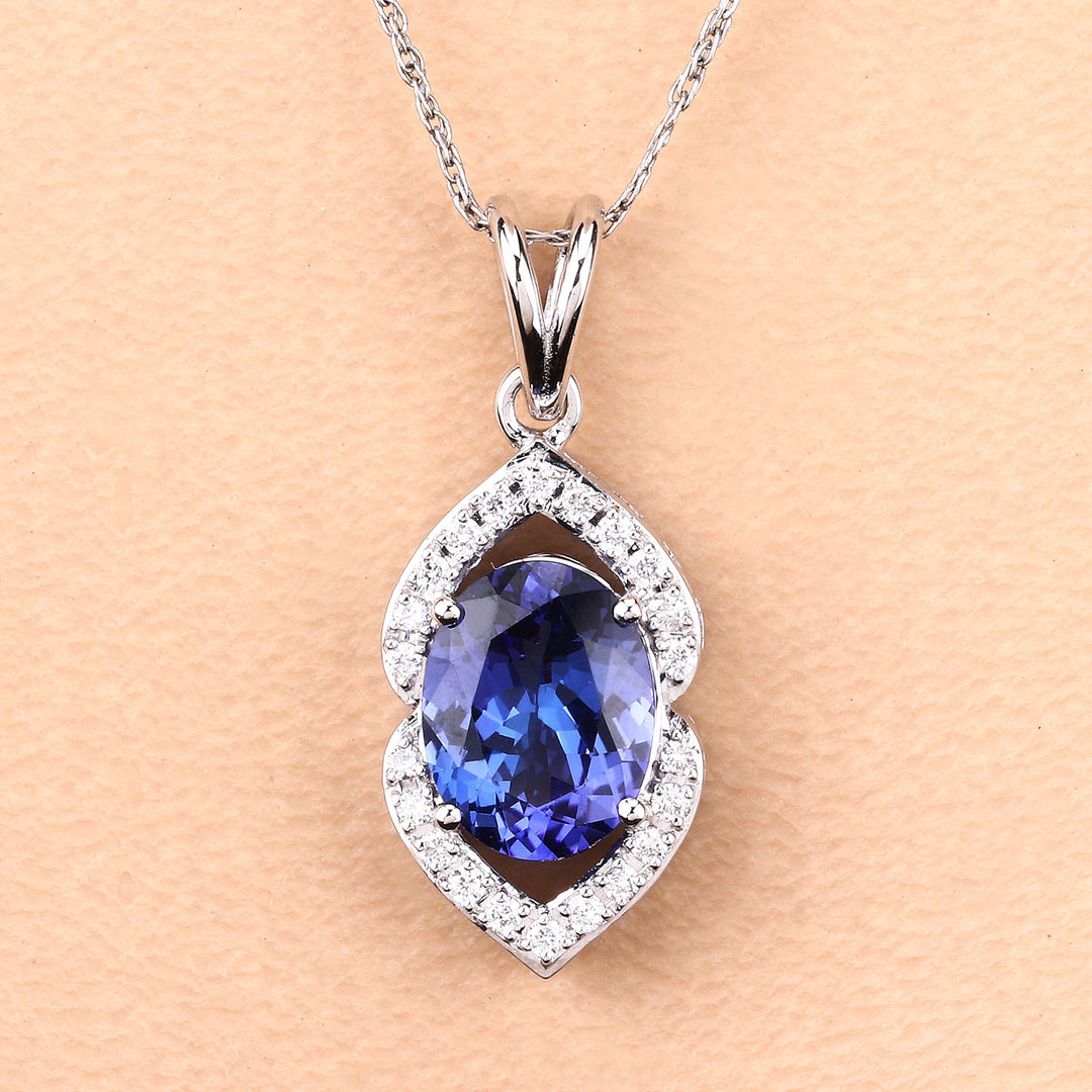 2.44 Carat Genuine Tanzanite and White Diamond 14K White Gold Pendant