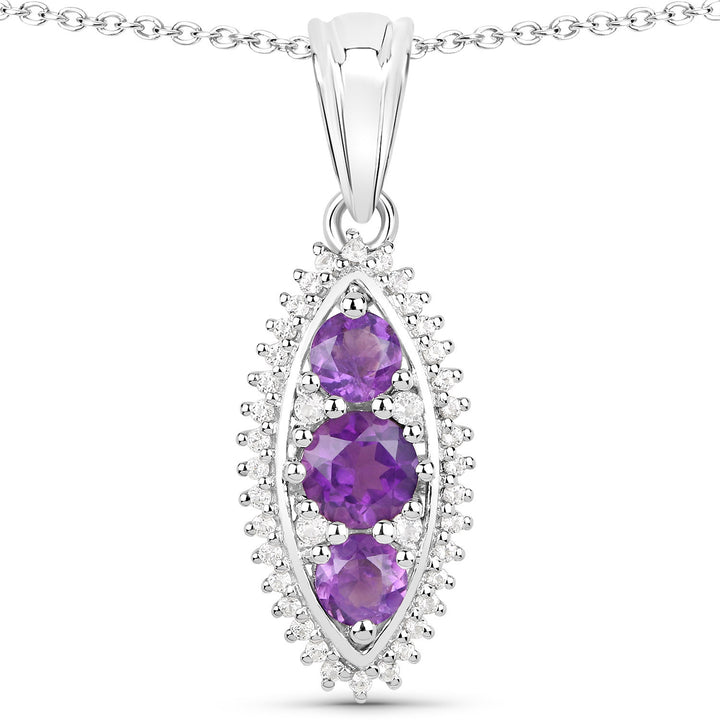 3.60 Carat Genuine Amethyst and White Topaz .925 Sterling Silver 3 Piece Jewelry Set (Ring, Earrings, and Pendant w/ Chain)