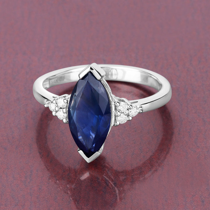 4.83 Carat Genuine Blue Sapphire and White Diamond 14K White Gold Ring