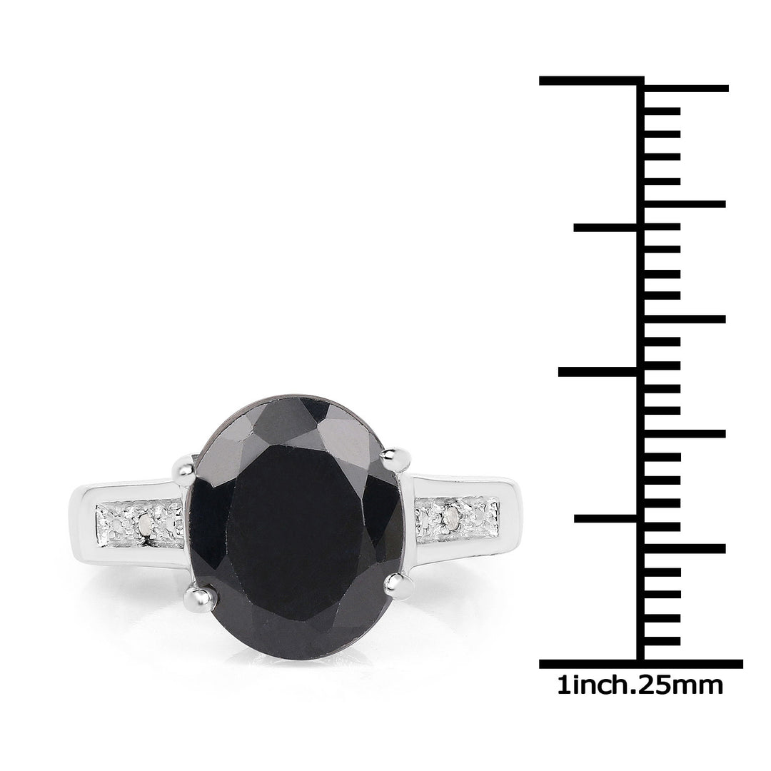 5.26 Carat Genuine Black Sapphire and White Diamond .925 Sterling Silver Ring
